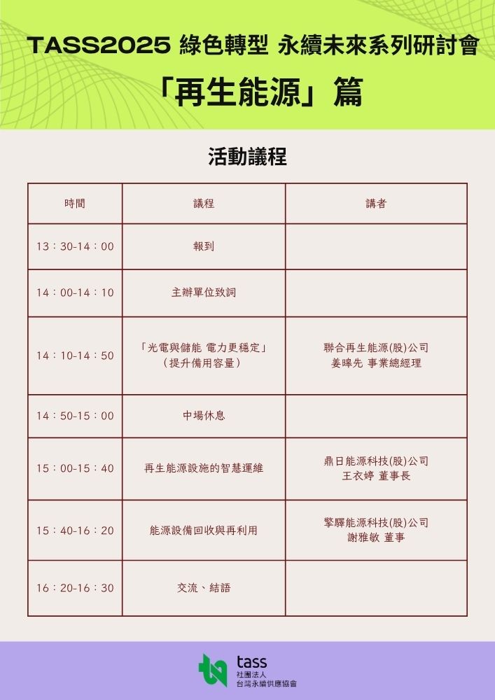 TASS2025 綠色轉型 永續未來系列研討會「再生能源」篇