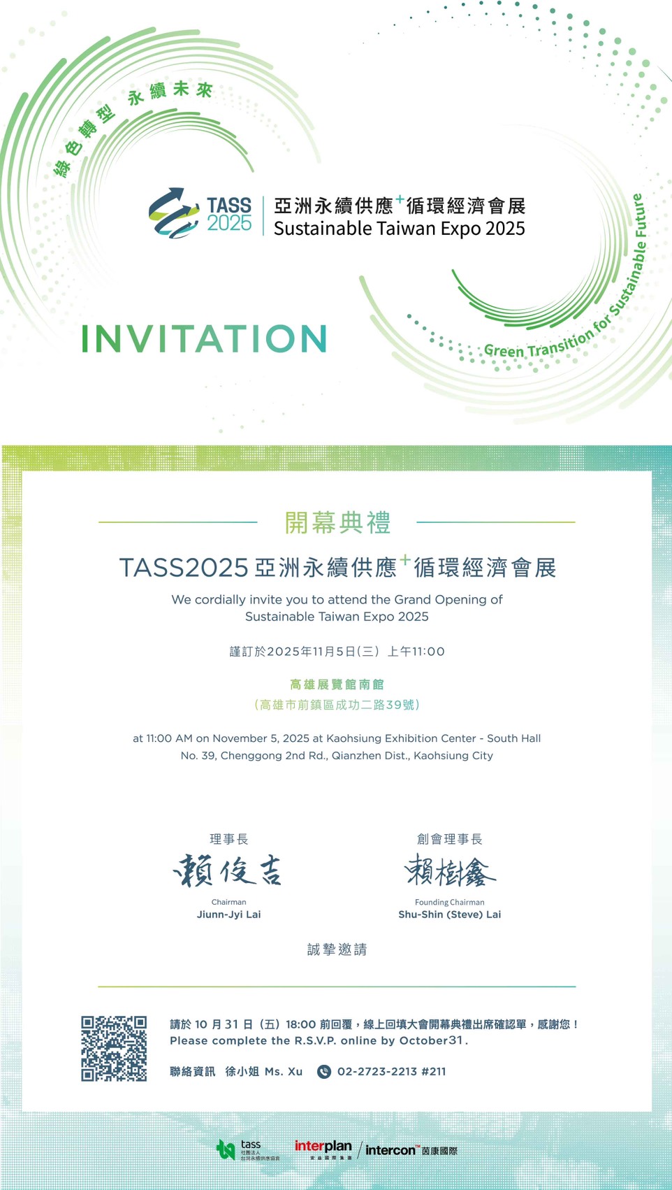 【邀請擔任貴賓】TASS2025亞洲永續供應+循環經濟會展_開幕典禮&參觀報名